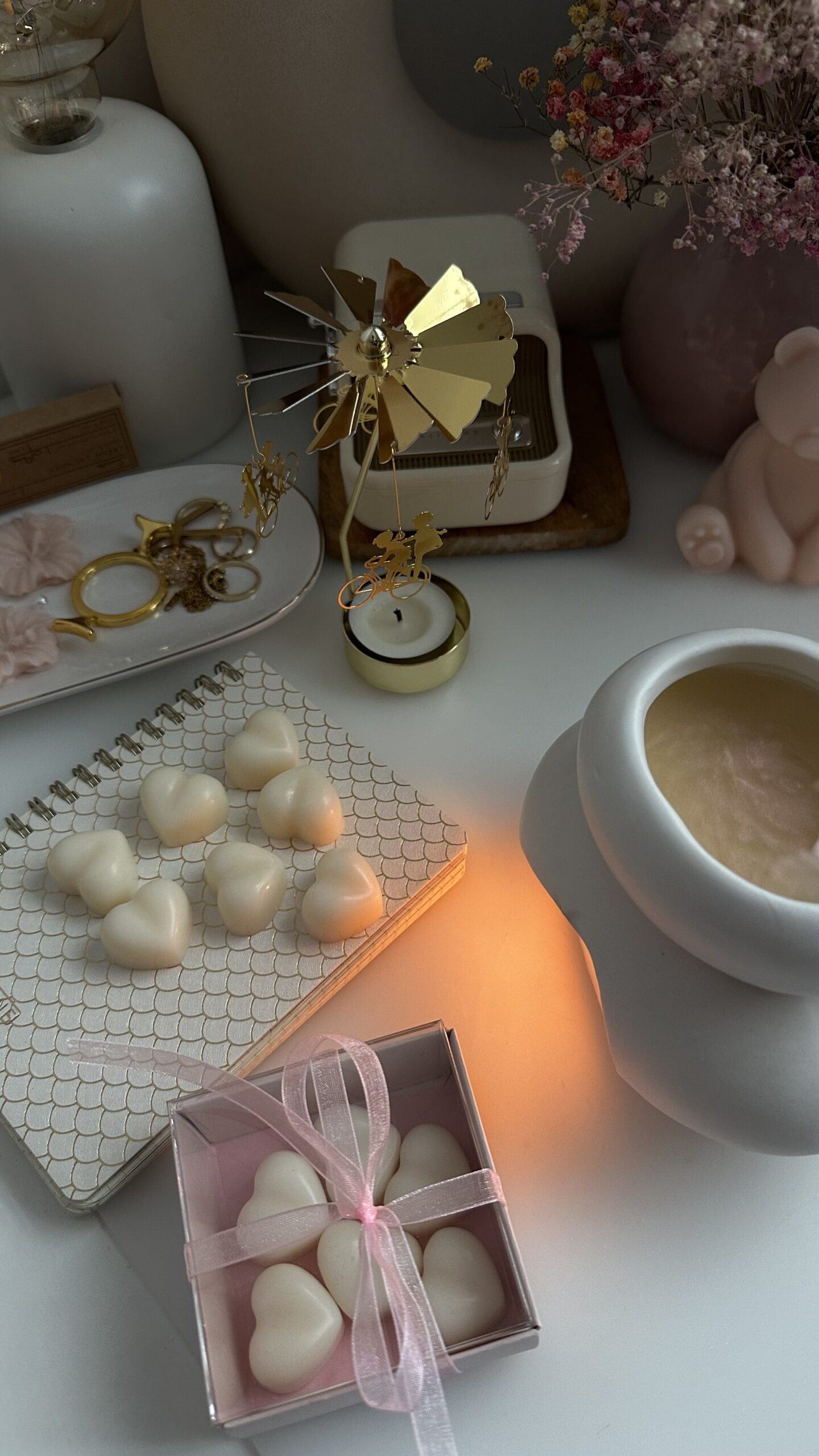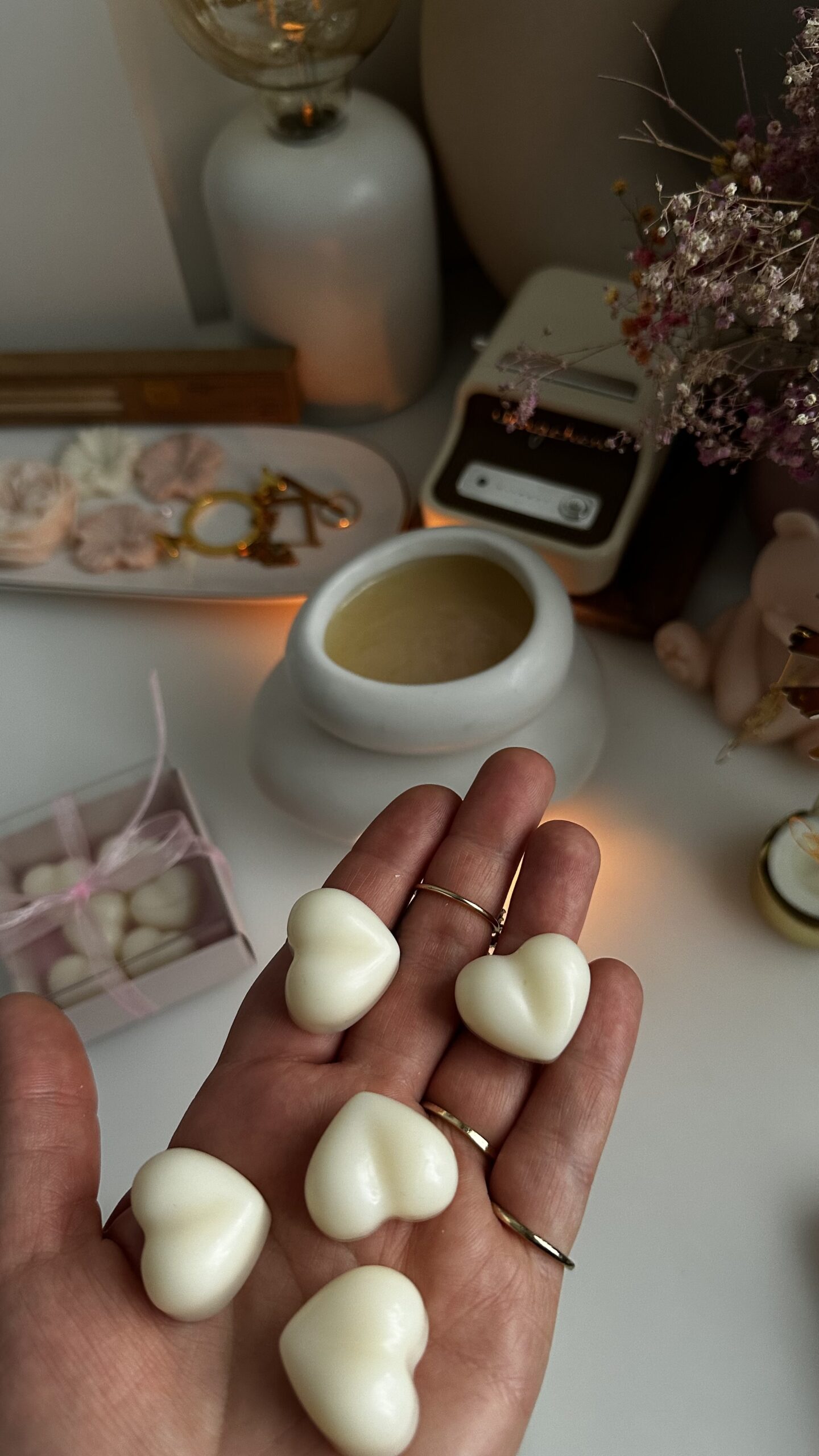 Odkryj wyjątkowy sposób na wypełnienie swojego wnętrza zmysłowym, tajemniczym aromatem. Nasze ręcznie wykonane woski sojowe w kształcie serduszek to nie tylko źródło pięknego zapachu, ale także elegancki, błyszczący dodatek do Twojego rytuału relaksu.